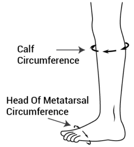 FlexiOH Short Leg Immobilizer comes in 6 different sizes : 2XS, XS, S, M, L and XL. All the casts vary in terms of calf circumference, above ankle circumference, head of meta-tarsal circumference and foot length. For the best fit of FlexiOH Short leg immobilizer, taking the measurement of the patient’s leg is necessary before application.